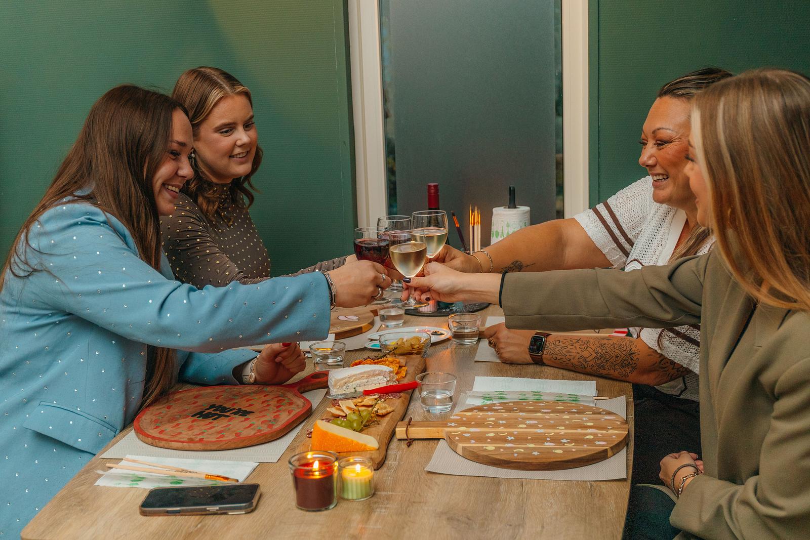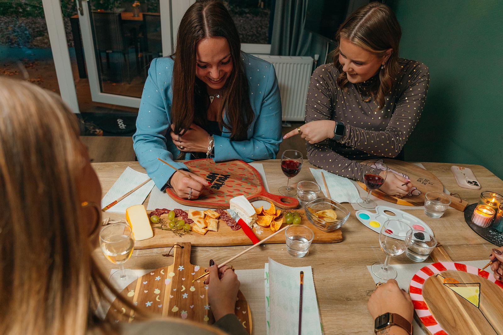 Maak jullie weekend extra bijzonder met onze verrassende extra’s. Kies bijvoorbeeld voor een creatieve DIY‑pakket, waarmee je een deurmat of borrelplank kunt beschilderen. Alles wordt geleverd bij je accommodatie, zodat jullie alleen hoeven te genieten.
