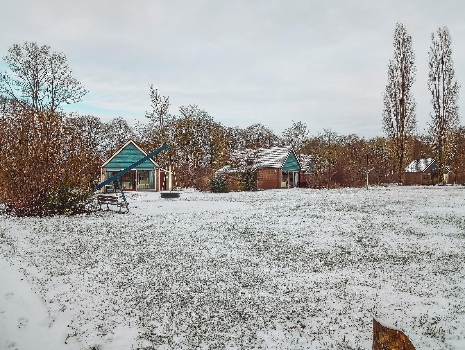 Winterse bungalows bij de Sallandse Heuvelrug